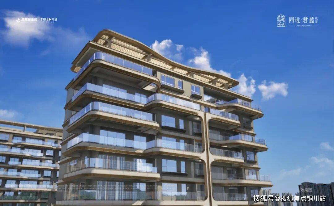 同进置业,横向流动的圆弧线条勾勒出建建的形体,