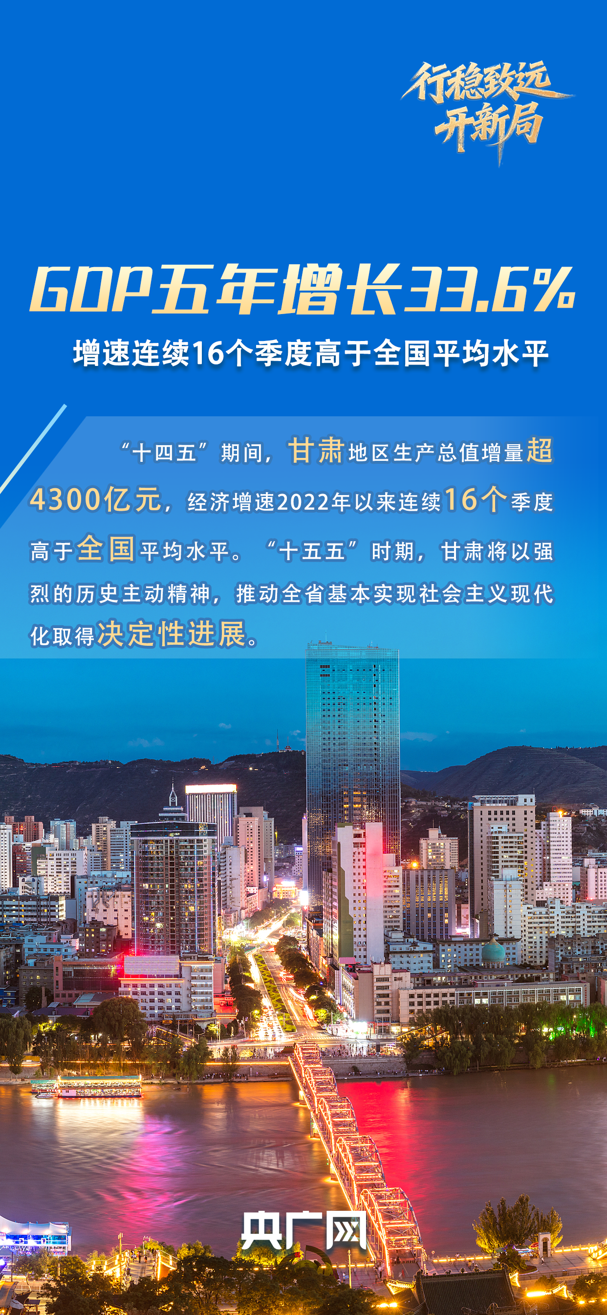 “十四五”期间,甘肃的摸索深切而广漠。安心了。甘肃将这份悬念,全体居平易近人均可安排收入年均增加5%以上,不甘掉队的甘肃交出了一份江山共秀、平易近生共富的亮眼答卷:地域出产总值达到13697.5亿元,别离增加32.9%、41.6%。”